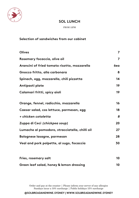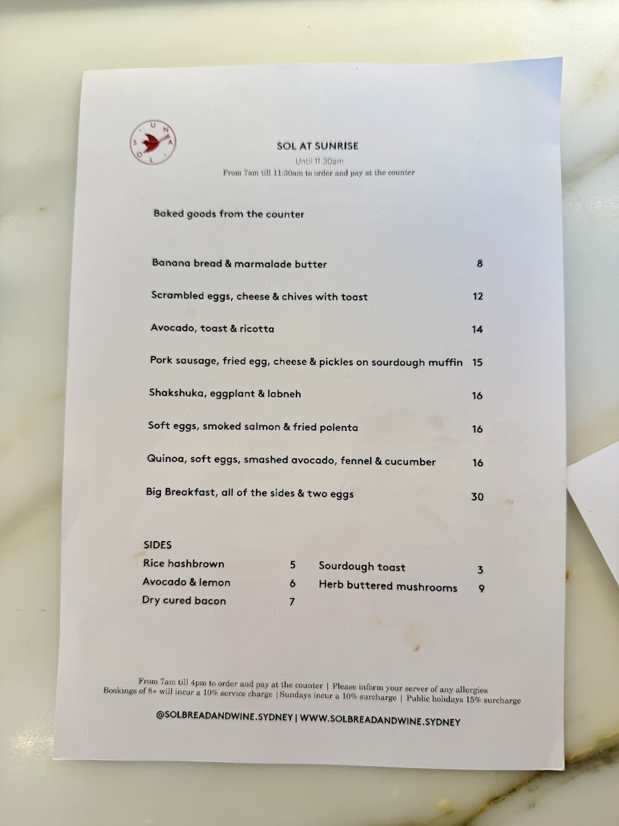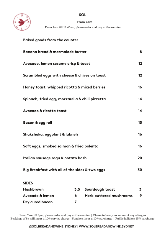 Welcome to Sol Bread and Wine, an inviting haven located in North Sydney, where culinary creativity meets quality ingredients. This gem is dedicated to crafting delightful breakfast and brunch experiences, alongside an exquisite selection of sides and coffee.